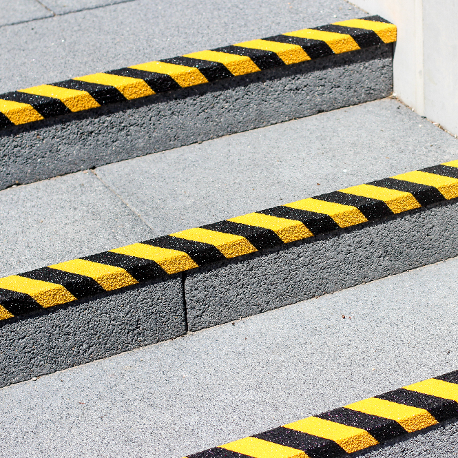 Bei den GFK Antirutschtreppenkantenprofilen handelt es sich um Fiberglasprofile aus glasfaserverstärktem Spezialkunststoff (GFK). Die Antirutschoberfläche besteht aus einer versiegelten Aluminiumoxidkörnung. Die Antirutschprofile dienen der Verhinderung von Rutschunfällen und daraus resultierender Folgekosten. Rutschhemmung R13. Es ist eine günstige, schraub- oder klebbare Lösung für jeden Untergrund, die bei jedem Wetter installiert werden kann. Diese Antirutschprofile sind extrem lange haltbar. Sie können mit einem Diamantsägeblatt individuell zugeschnitten werden.